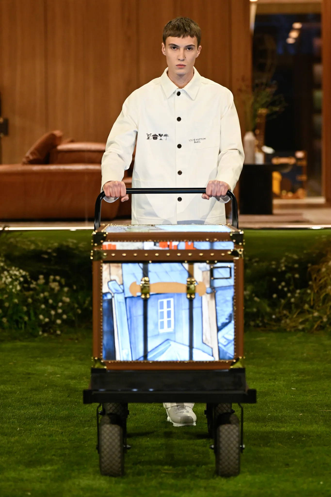 在 LOUIS VUITTON 2026 秋冬大秀上,创意总监 Pharrell Williams 与 NOT A HOTEL 联手打造了一座玻璃墙预制住宅 DROPHAUS,以及定制家具系列「HOMEWORK」,为秀场营造沉浸式环境。住宅位于卢浮宫基金会花园之中,家具以「十百分之一的不完美」为设计理念,强调空间的人性化与生活感。通过这座建筑,Pharrell 将未来居住理念与时尚秀场融为一体,呈现出「工业静谧」的居家氛围。